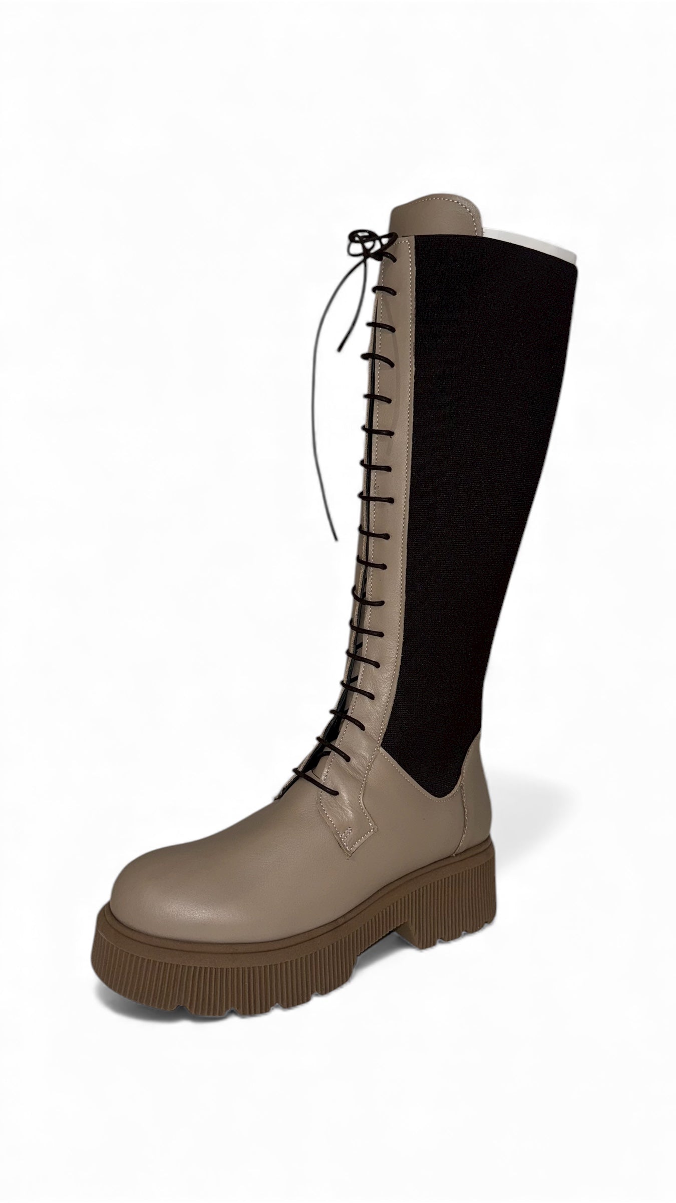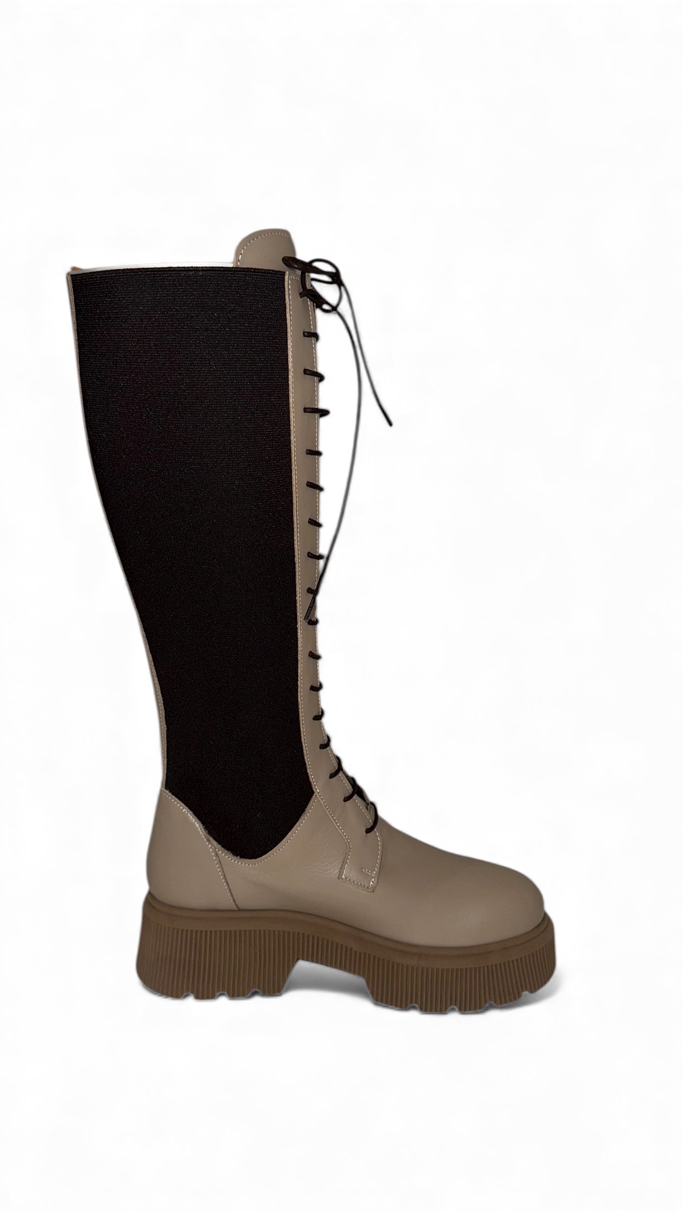 Assemblato con elastici che garantiscono comfort e calzata perfetta anche per polpacci importanti. Completamente regolabile mediante lacci sul davanti.